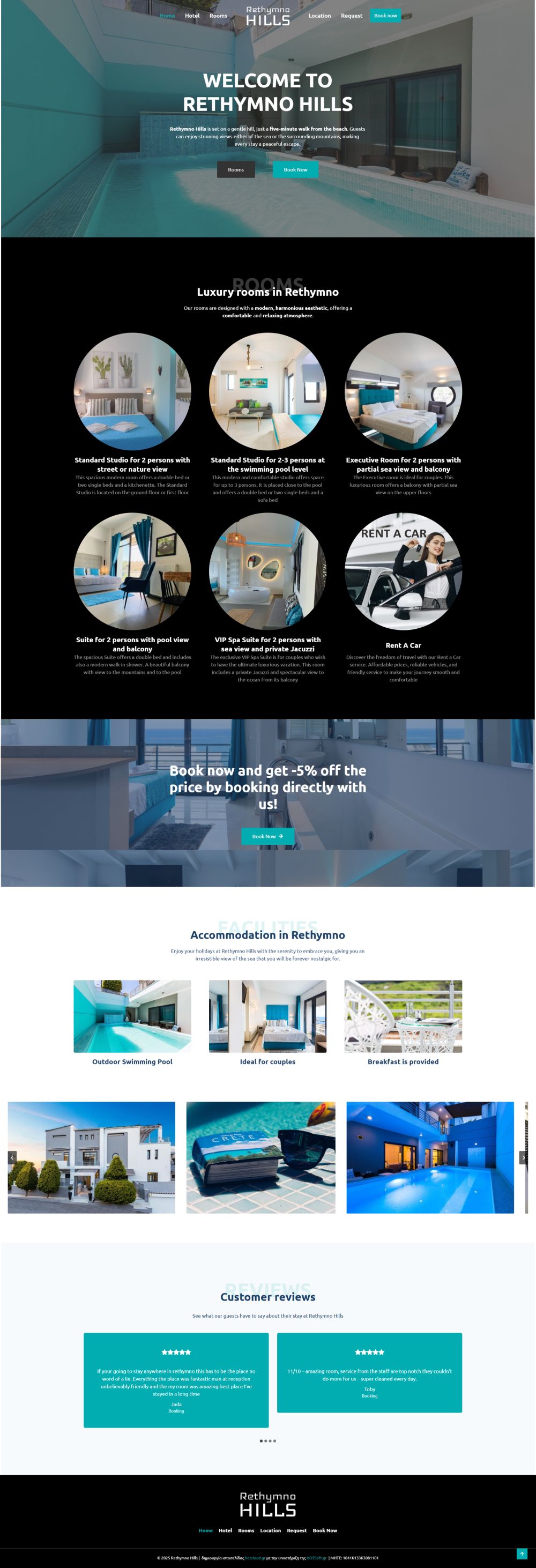 Μελέτη, σχεδιασμός και ανάπτυξη δυναμικής ιστοσελίδας για το ξενοδοχείο Rethymno Hills, με βάση το μοντέρνο & ιδιαίτερο προφίλ της επιχείρησης.