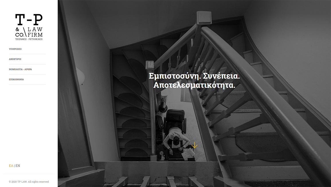Δυναμική ιστοσελίδα δικηγορικού γραφείου TP Law (Τσικνάκης - Πετρακάκης) made by HOTSoft.gr Νομικές υπηρεσίες σε ευρύ φάσμα αντικειμένων. Ανάλυση Έργου > Σχεδιασμός & ανάπτυξη δυναμικής ιστοσελίδας > Εξατομικευμένο web design, σχεδιασμένο σύμφωνα με τις ανάγκες της επιχείρησης > Εύχρηστο σύστημα διαχείρισης περιεχομένου > Οργάνωση & διαχείριση περιεχομένου> Εκπαίδευση & καθοδήγηση Επισκεφτείτε την ιστοσελίδα: tplaw.gr Πίσω