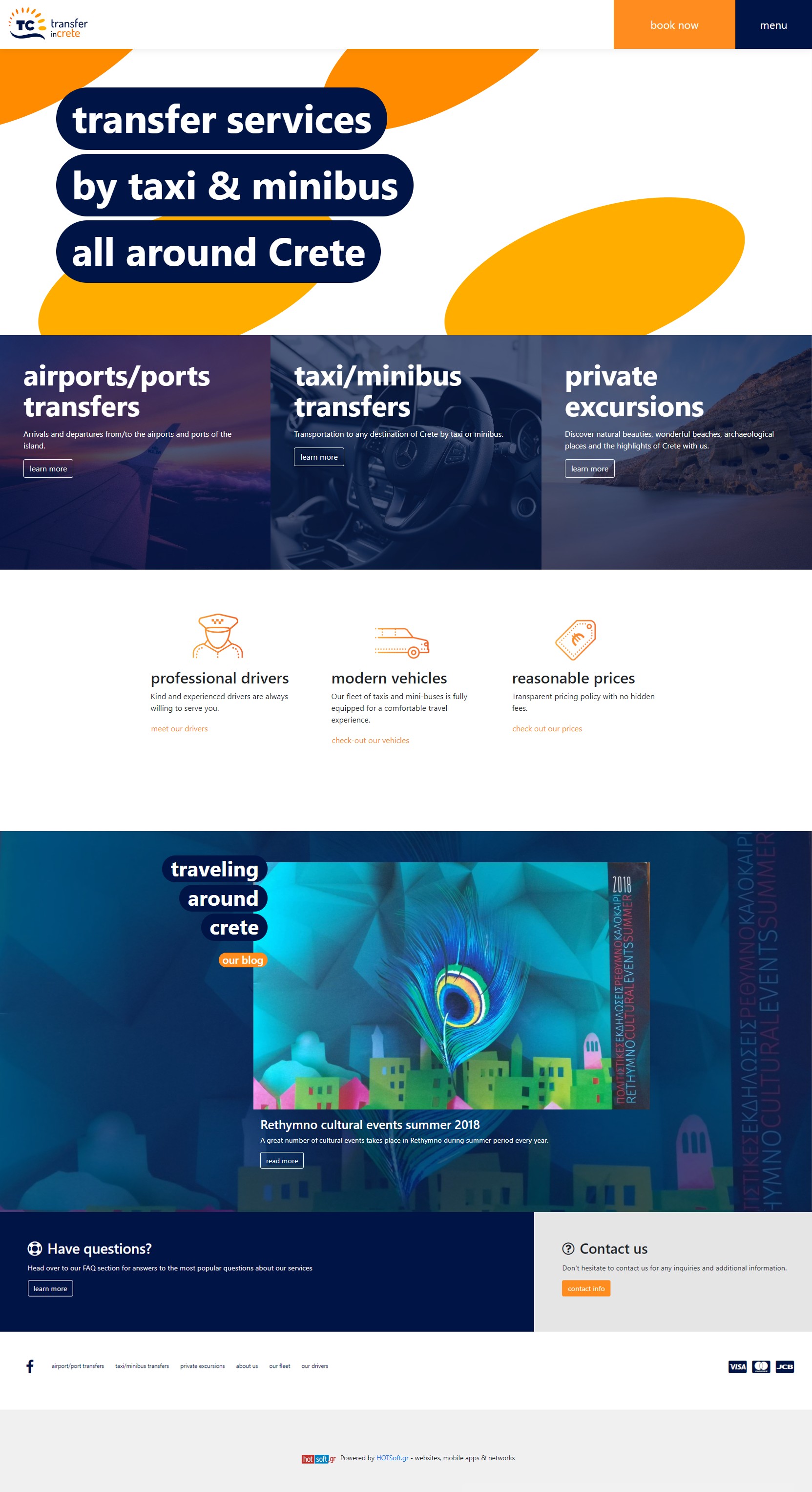 > Απλός και μοντέρνος σχεδιασμός των γραφικών και δυνατότητα προβολής των υπηρεσιών και του στόλου των αυτοκινήτων της επιχείρησης. Μελέτη, σχεδιασμός και ανάπτυξη δυναμικής ιστοσελίδας με σύστημα διαχείρισης περιεχομένου.