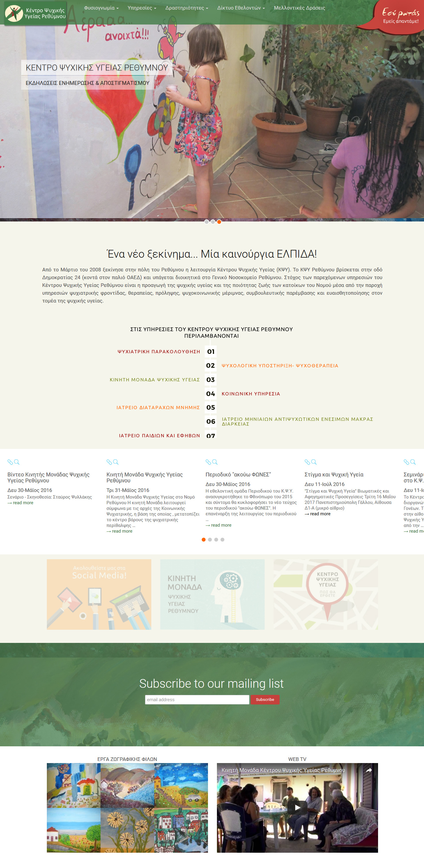 Το εύχρηστο σύστημα διαχείρισης περιεχομένου της HOTSoft.gr το HOTcms, επιτρέπει στα μέλη του Κέντρου Ψυχικής Υγείας Ρεθύμνου, εύκολα να διαχειρίζονται - ενημερώνουν το περιεχόμενο της ιστοσελίδας τους. Ο επισκέπτης έχει την δυνατότητα να δει σχετικά video στο Web TV της ιστοσελίδας, ή να κάνει το υλικό της ιστοσελίδας post στα social media.
