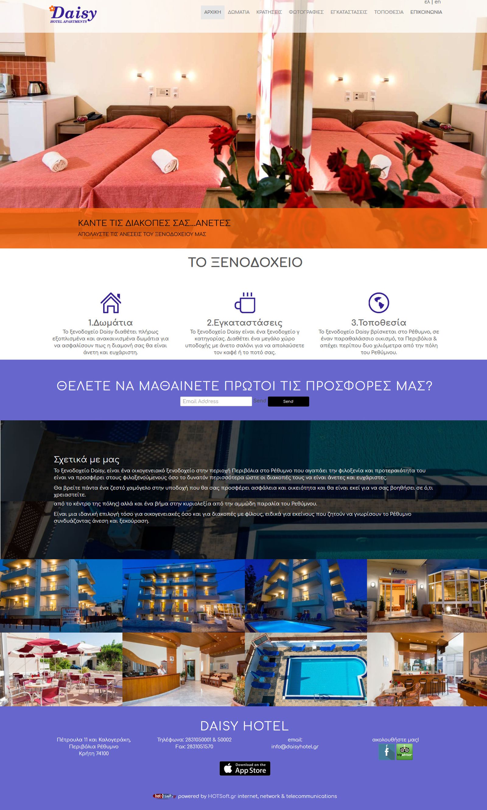 Μελέτη, σχεδιασμός και ανάπτυξη δυναμικής ιστοσελίδας για το ξενοδοχείο πόλης Daisy Hotel Apartment.