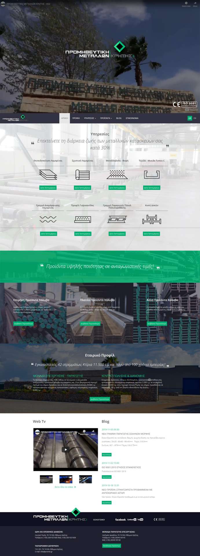 Μελέτη, σχεδιασμός και ανάπτυξη δυναμικής ιστοσελίδας σε 2 γλώσσες για την Προμηθευτική μετάλλων Κρήτης η οποία δραστηριοποιείται στην πώληση Προϊόντων Χάλυβα καθώς και την Επεξεργασία & Διάθεση Μετάλλων.