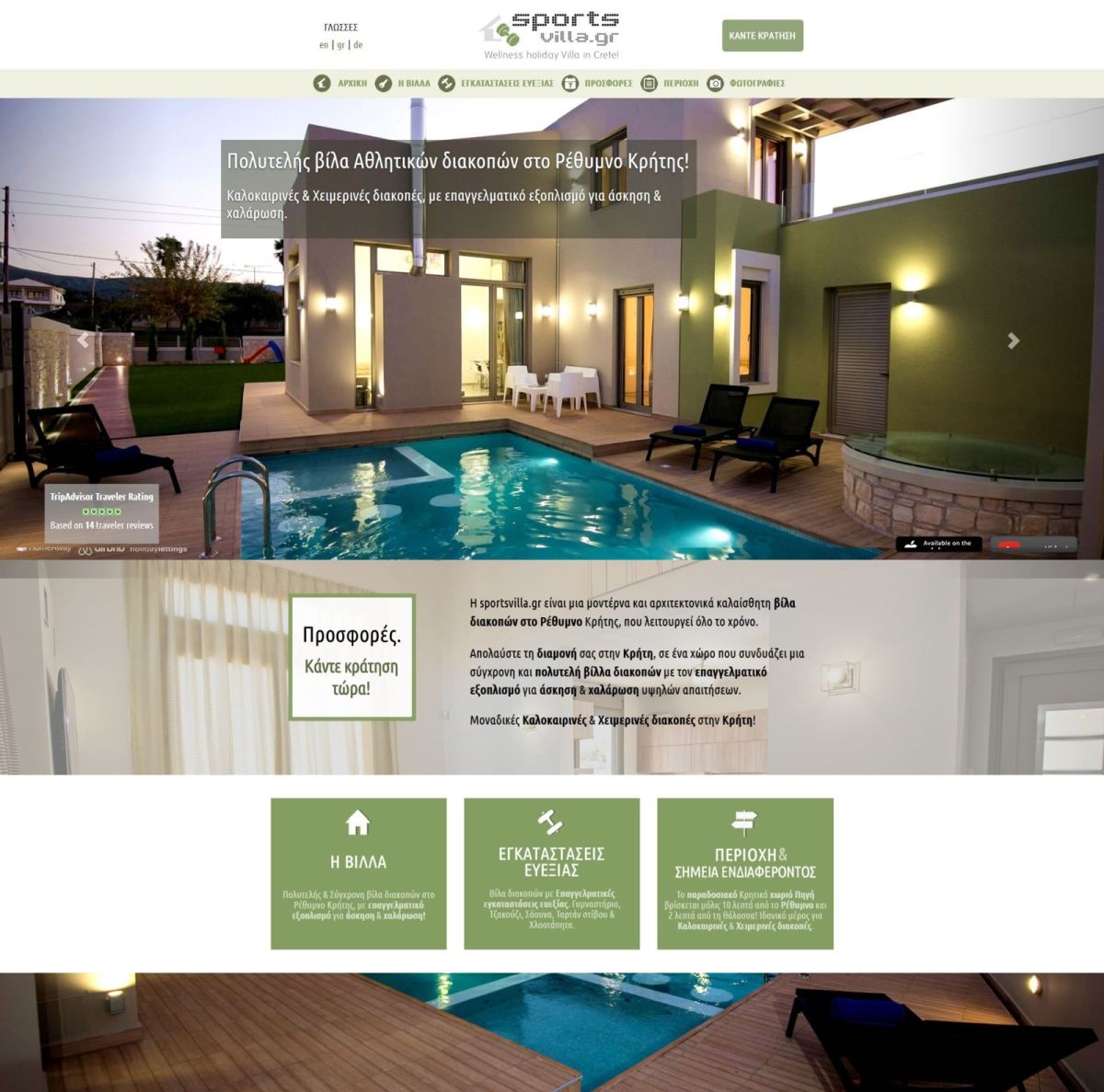 Κατασκευή δυναμικής ιστοσελίδας σε 3 γλώσσες η οποία δίνει την δυνατότητα στην επιχείρηση να ενημερώνει τους επισκέπτες της για τις υπηρεσίες που παρέχονται, φωτογραφίες από τις εγκαταστάσεις με τον προηγμένο εξοπλισμό γυμναστικής που διαθέτει, διάφορες προσφορές διαμονής αλλά και πληροφορίες για δραστηριότητες που θα μπορούσε ο επισκέπτης να κάνει στην γύρω περιοχή.